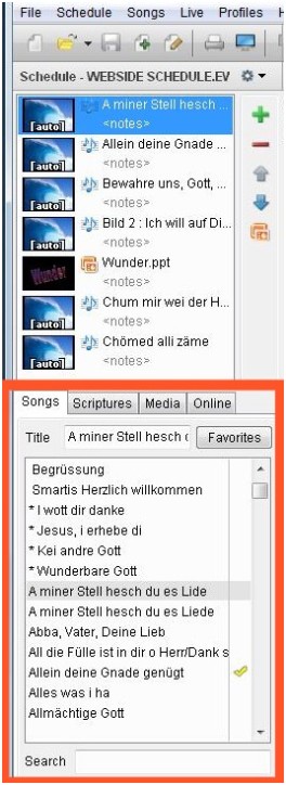 In der Datenbank legen Sie Ihre Liedertexte ab, verwalten diese und können mit Favorites jene bezeichnen die sie am meisten benutzen.