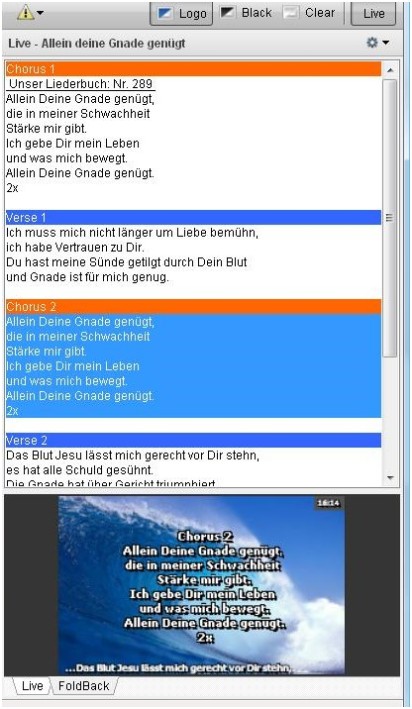- FoldBack; Zeigt die Anzeige des FoldBackgerätes.(ev. Bildschirm für die Bühne)